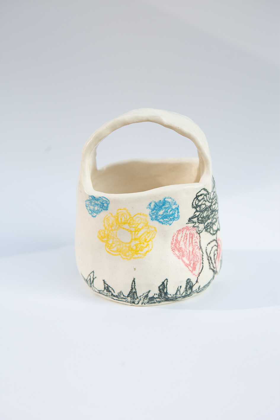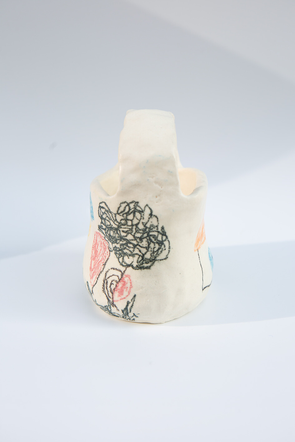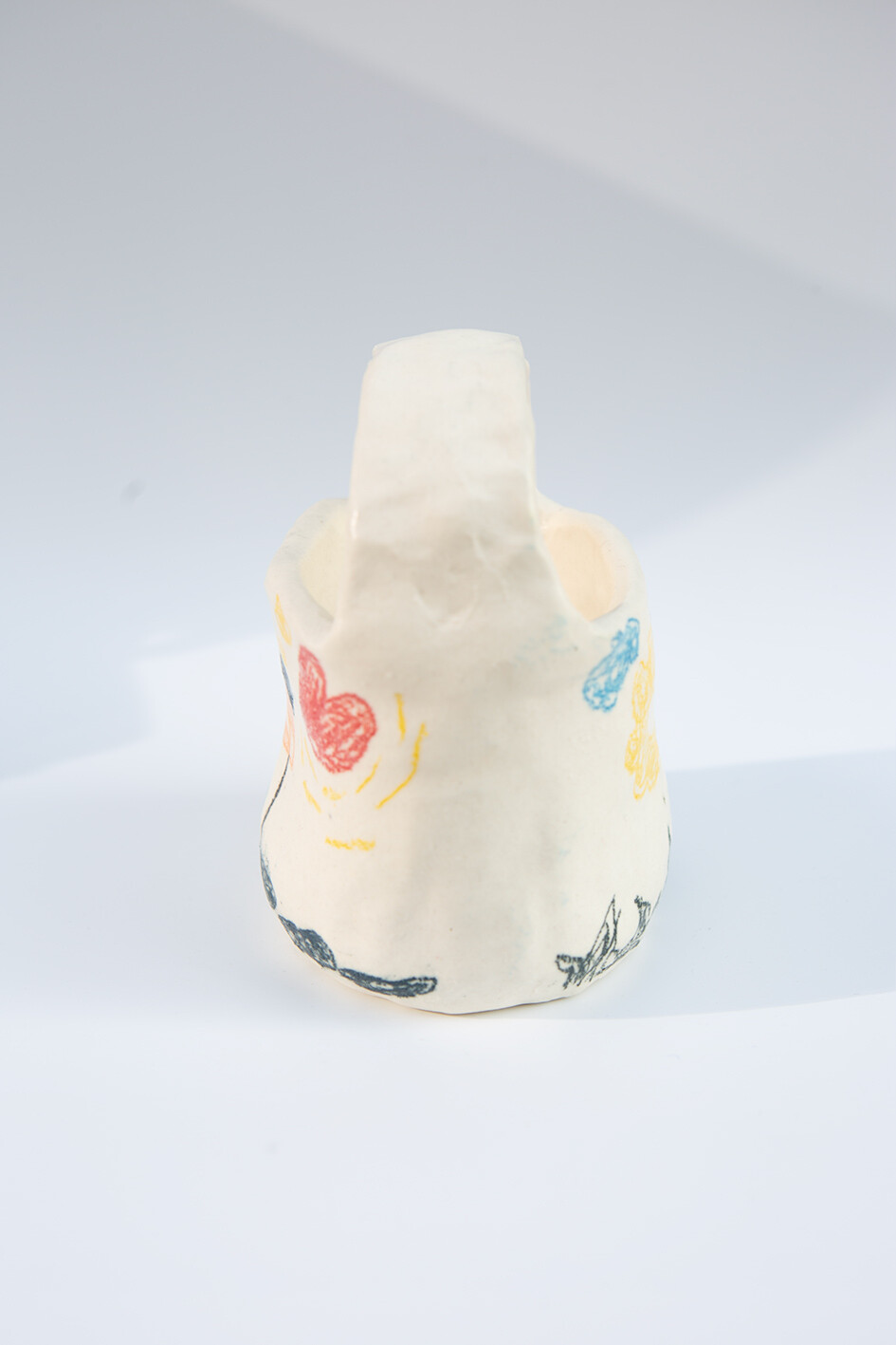 장난스러운 낙서가 들어간 가방 형태의 멀티홀더 제품입니다.