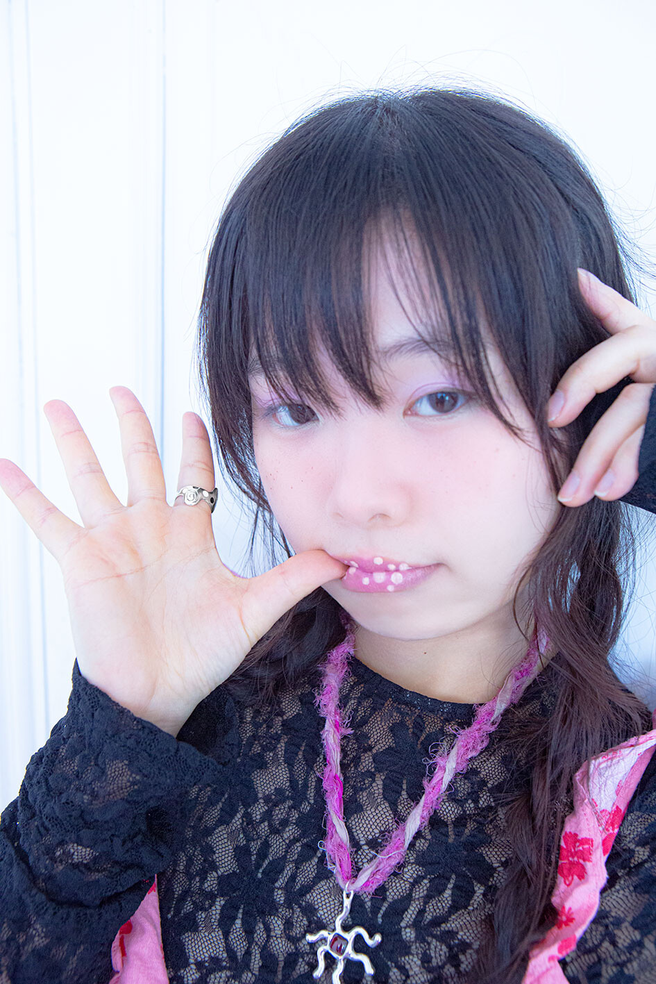 핑크와, 블랙앤화이트가 도트 무늬로 들어가 유니크한 포인트 제품으로 착용하기 좋은 제품입니다.