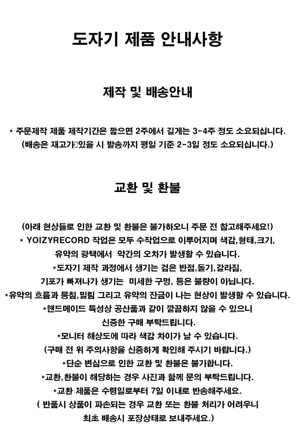 * 제품 수령 후 제품 불량의 경우 수령일로부터 2일 이내에 요이지레코드 자사몰 게시판을 통하여 문의 내용 접수해 주시면 확인 후 교환 및 환불 진행 도와드리겠습니다.