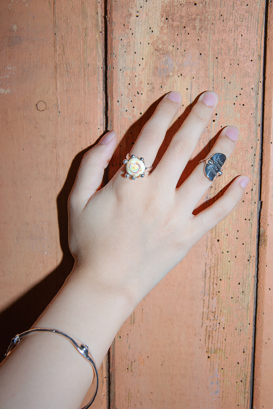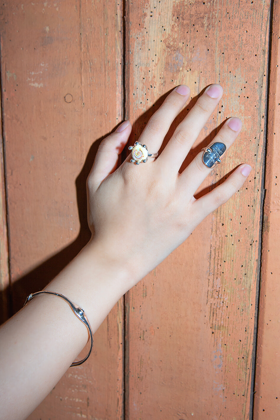따뜻한 마음이 담긴 도자기 원석을 담아낸 히피스타일의 반지입니다.