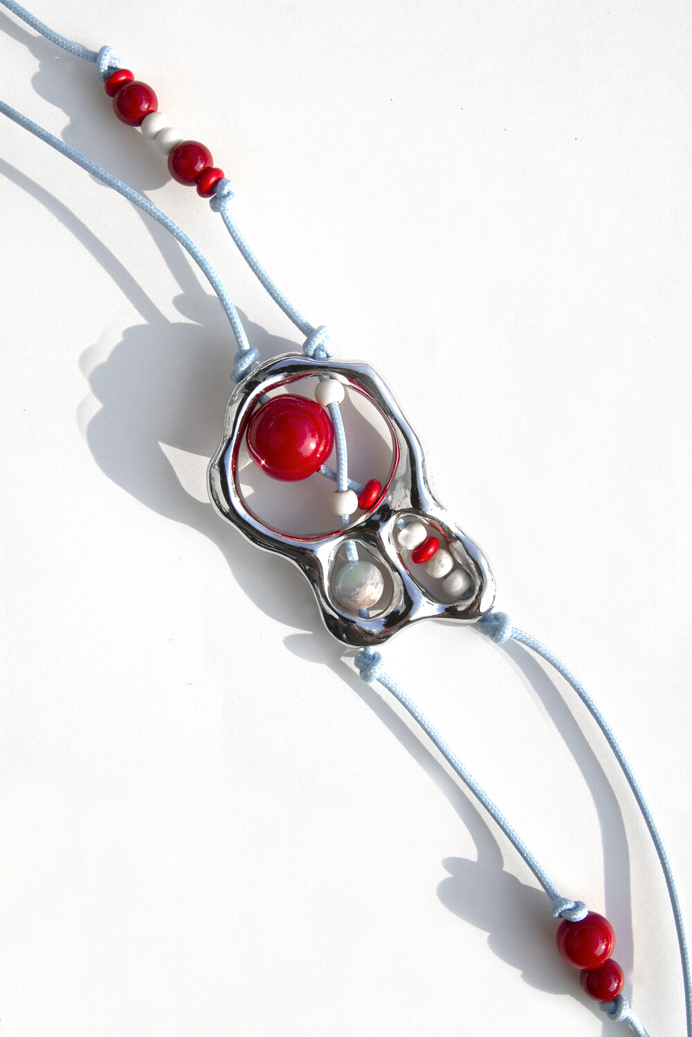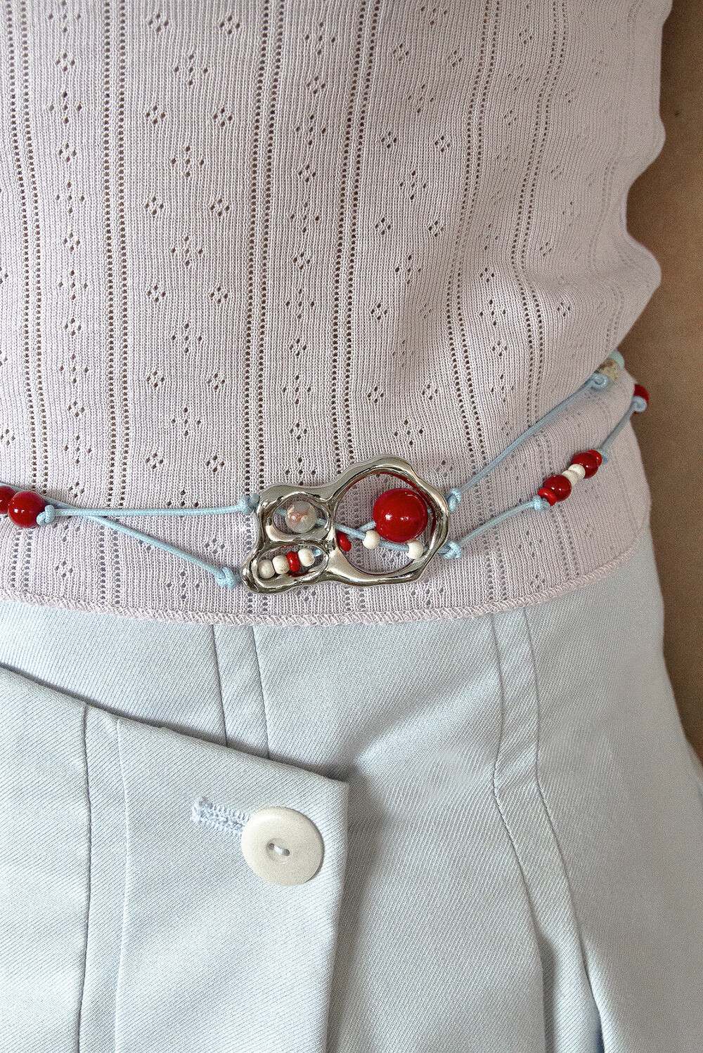 녹아내린 달달한 젤리가 녹아 몸에 달라붙은 듯 끈쩍한 시럽이 떠오르는 멀티바디체인입니다. (레드,블루 두 종류)