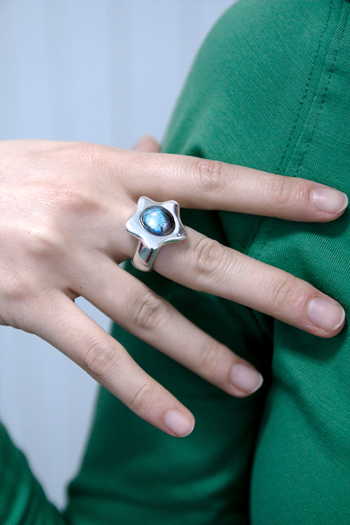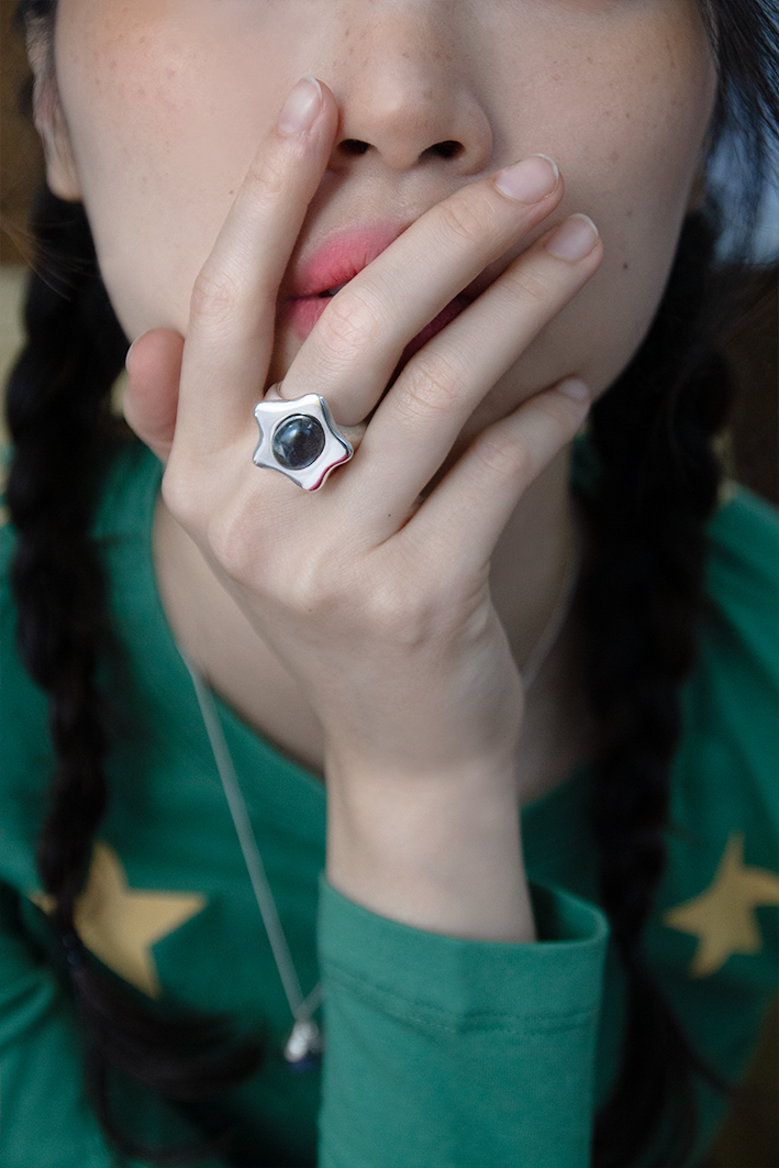 키치한 디자인의 Cat Odd Eye Star Ring은 어느 룩에나 포인트가 되어주는 아이템이고, 유니크한 디자인에 비해 손이 닿는 반지 부분은 플랫하게 디자인되어 편안 착용감을 가진 반지입니다.