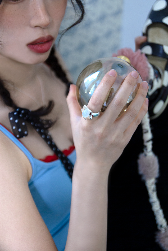 두가지 컬러의 원석 중 화이트컬러는 화이트,스카이블루,라이트핑크 등이 함께 보이는 매력을 가진 반지입니다.