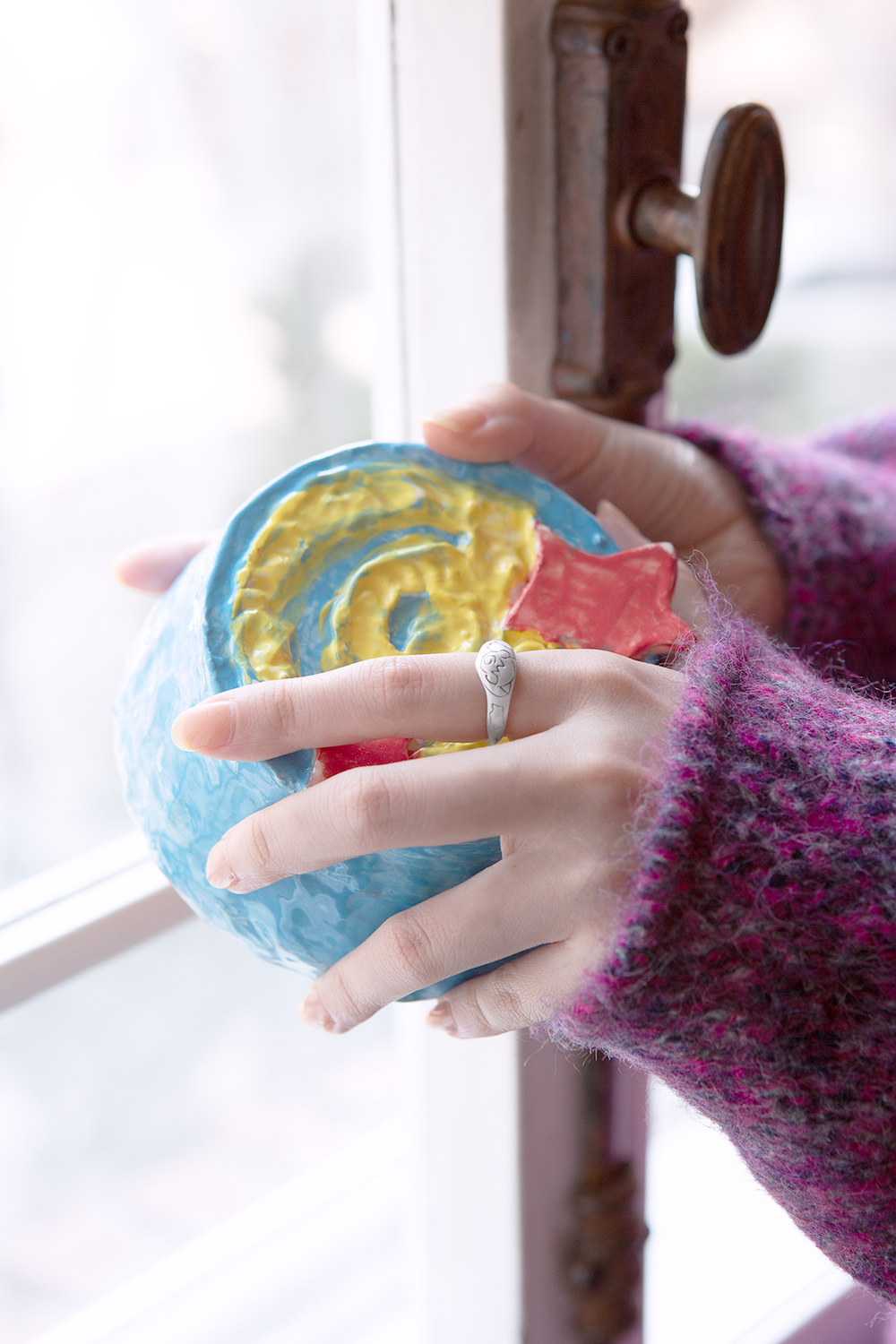 드로잉으로 담긴 스카프 형태의 반지 제품입니다.