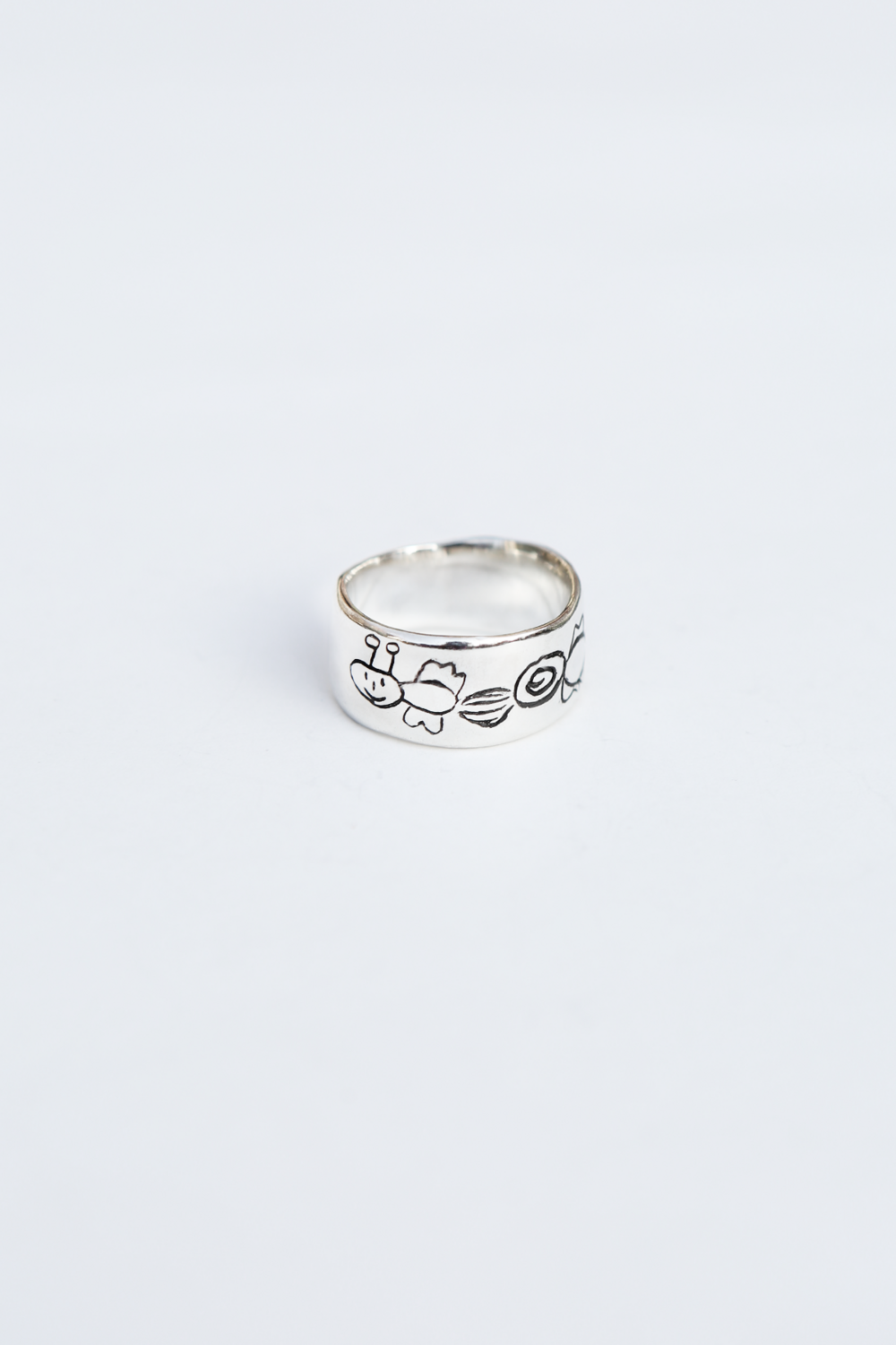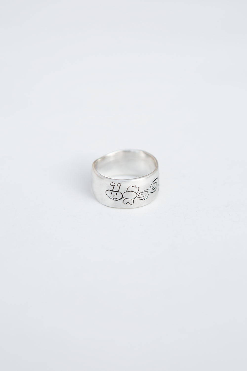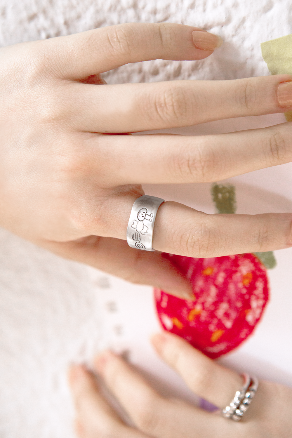 애벌레의 모습이 하나의 드로잉으로 담긴 반지입니다.