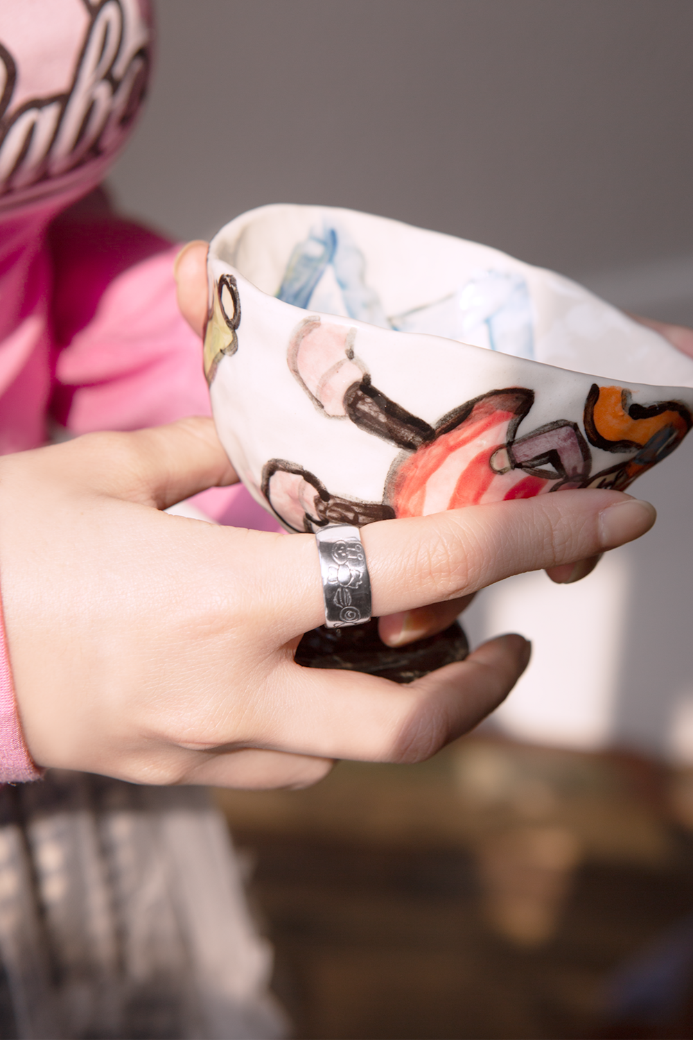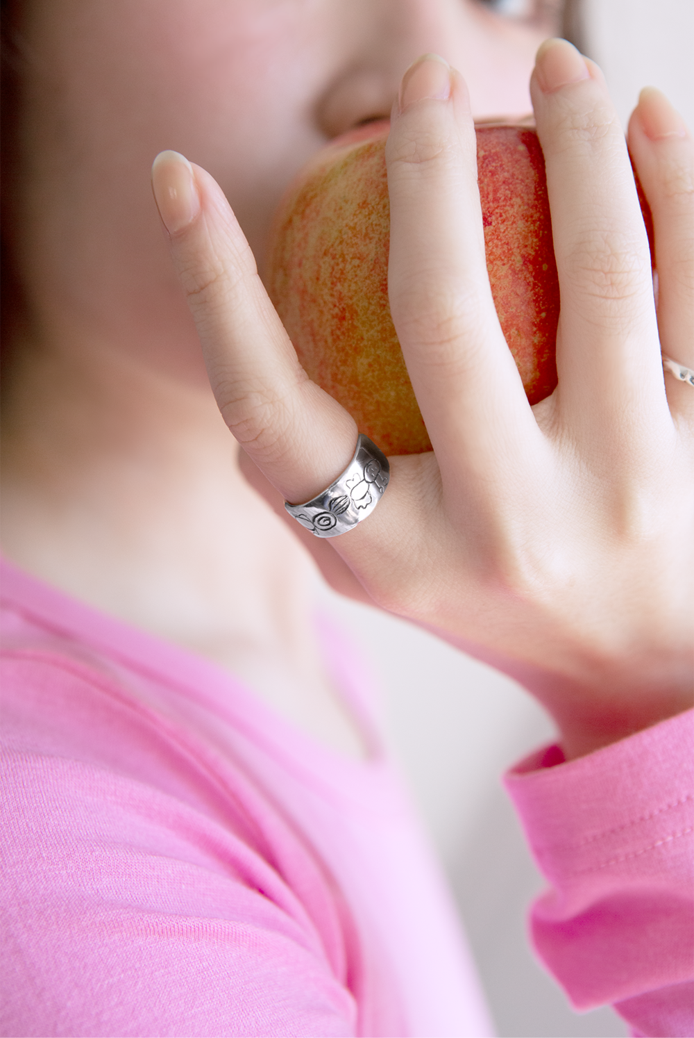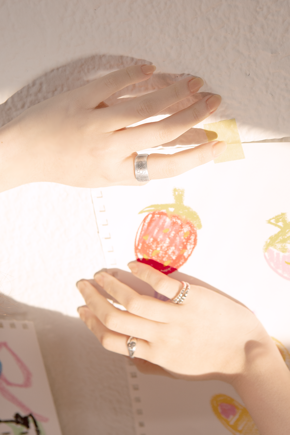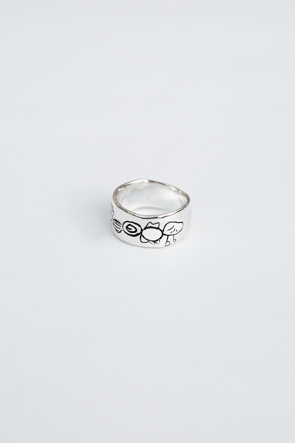 애벌레의 모습이 하나의 드로잉으로 담긴 반지입니다.
