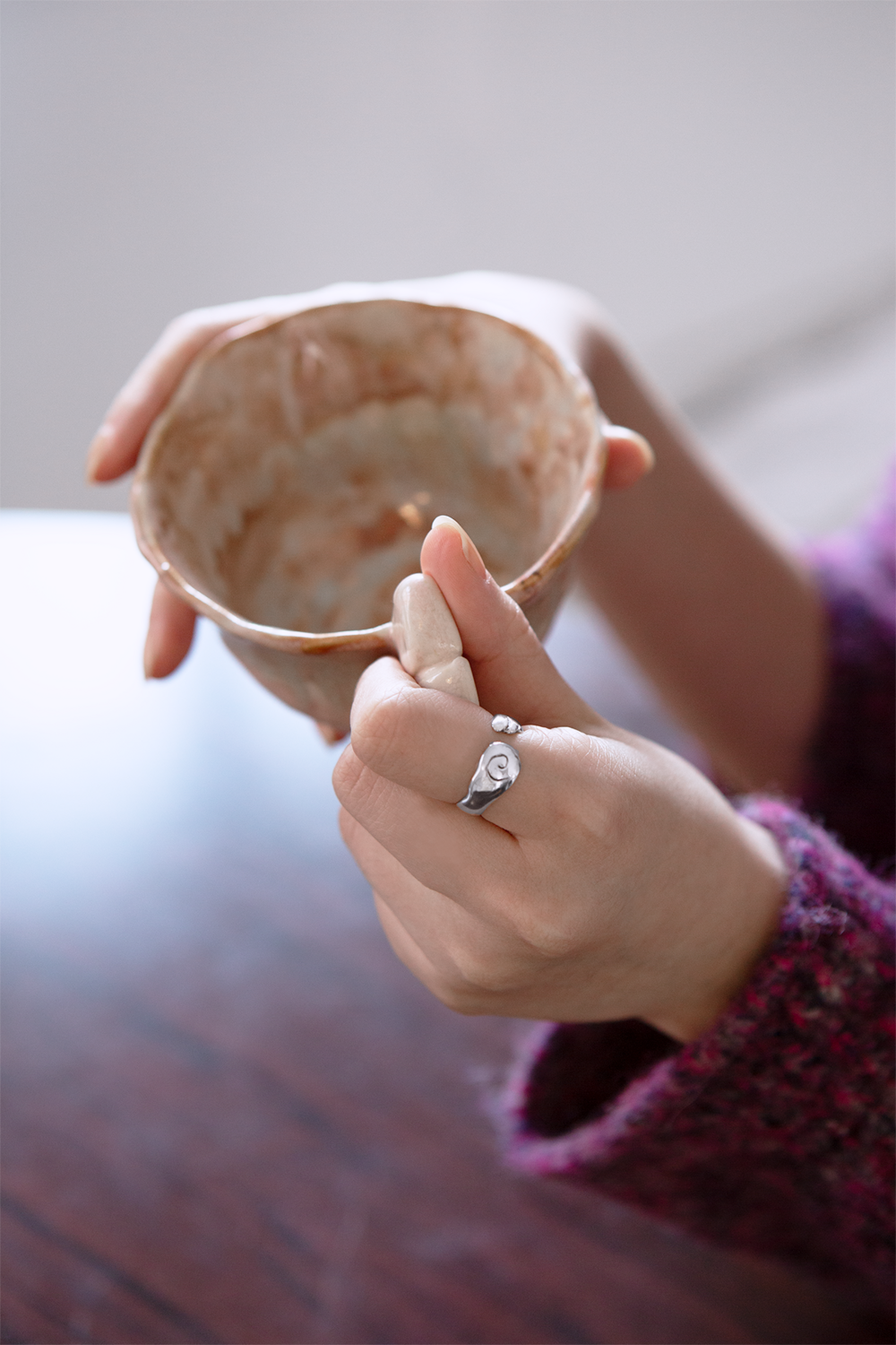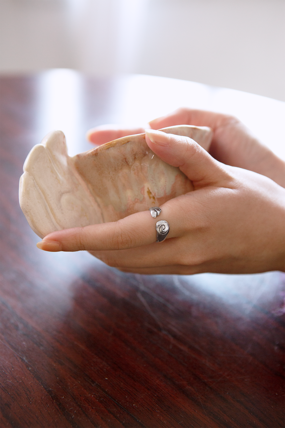 날개 부분을 손바닥 안쪽으로 착용시에는 심플한 디자인의 얇은 디자인의 반지로 착용이 가능합니다.