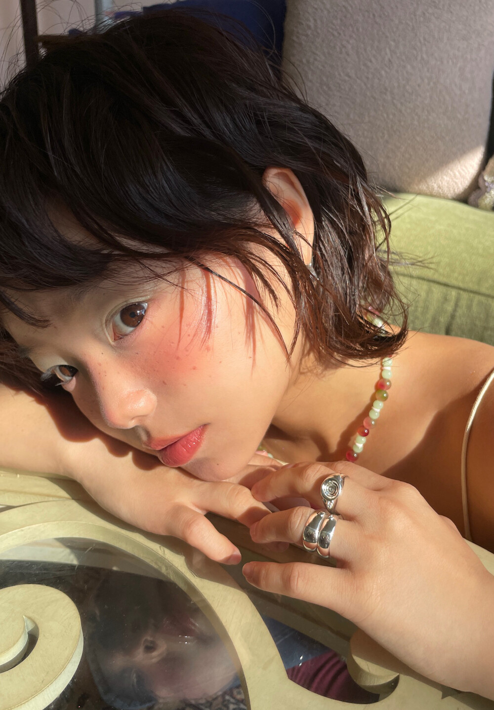 손가락과 맞닿는 부분이 두께와 면적 모두 얇게 제작되어 착용감이 편하고 러블리하고 키치한 무드로 포인트를 줄 수 있는 제품입니다.