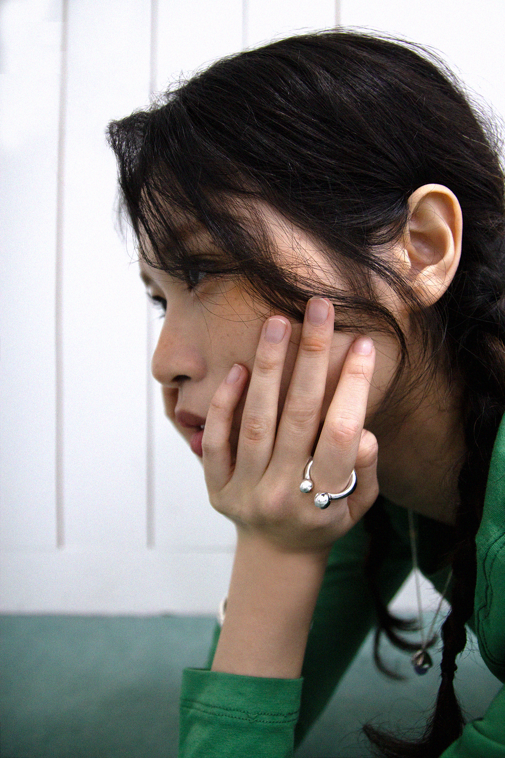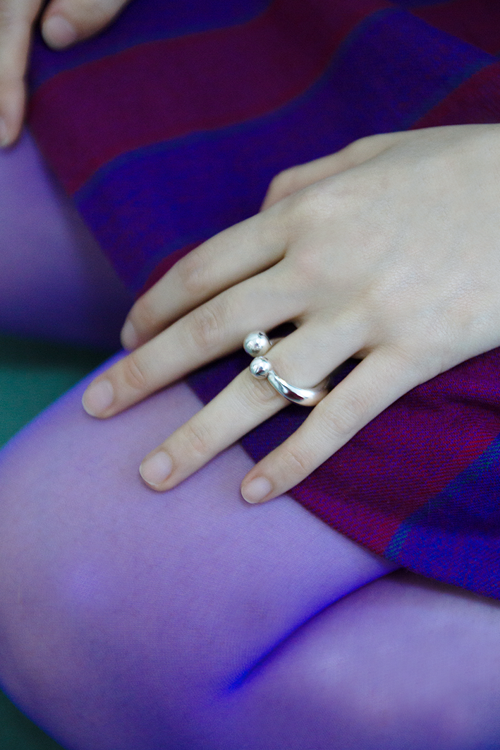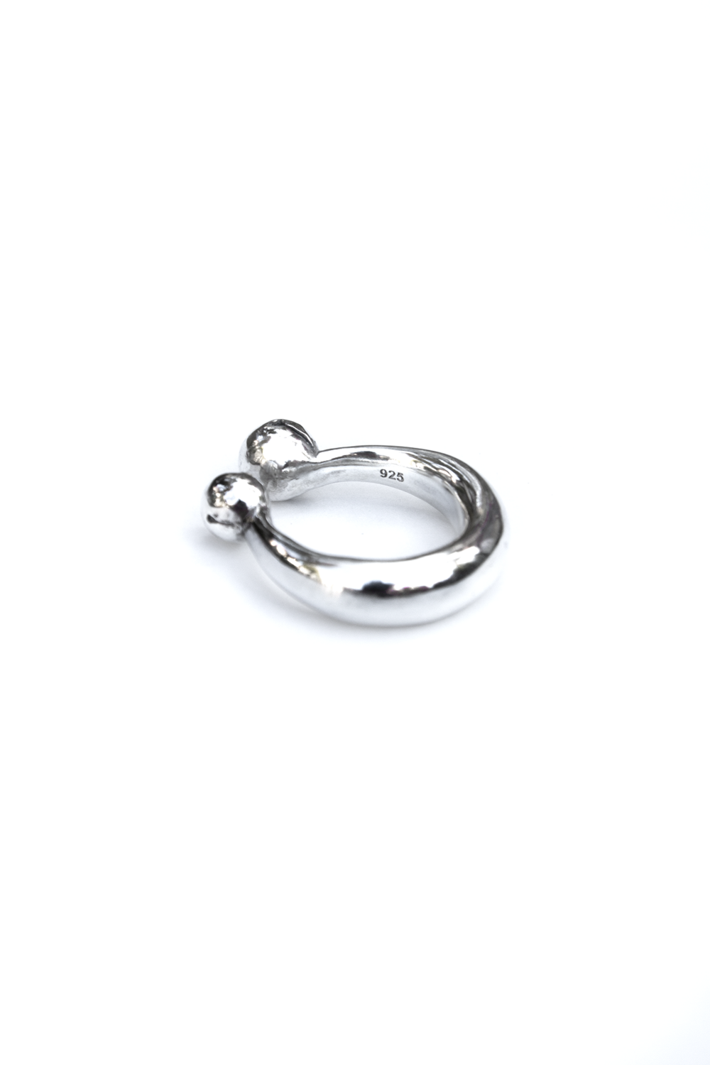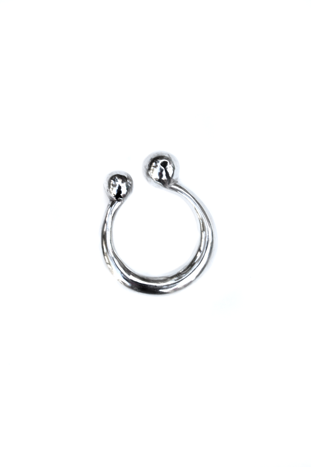 고양이와 딱 어울리는 방울형태의 오픈링으로 볼드한 디자인의 반지입니다. 둥근 바깥쪽 면과 다르게 안쪽은 비교적 플랫한 느낌으로 디자인되어 편한 착용감과 다른 크기의 양쪽 방울이 매력인 제품입니다.