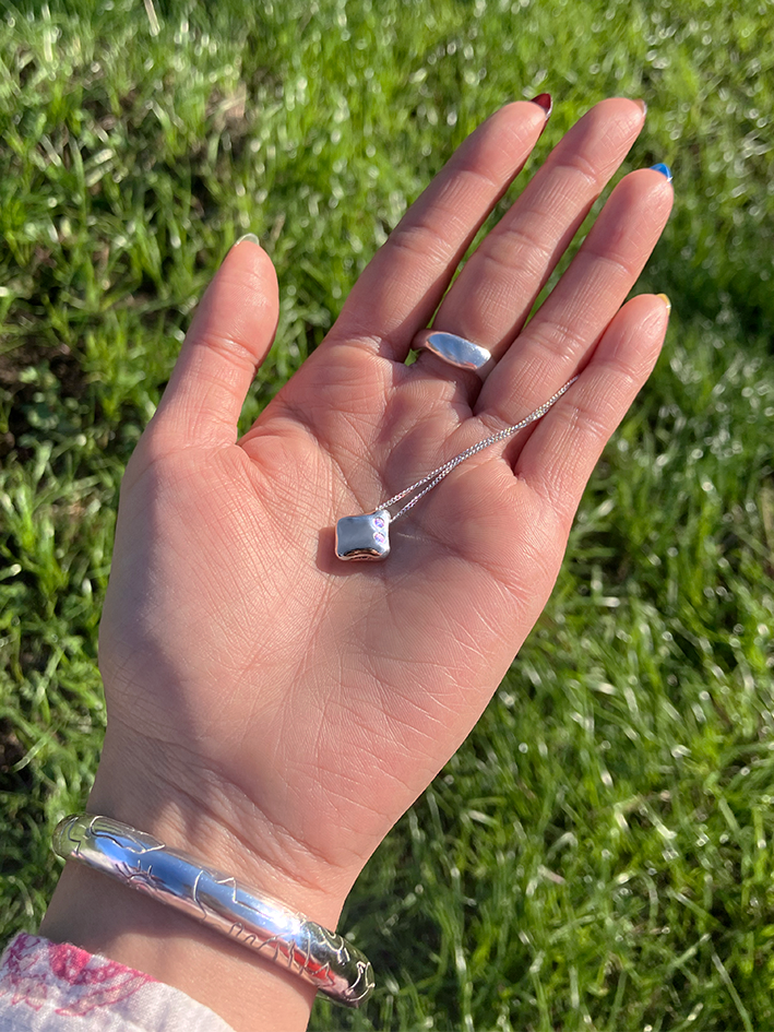 도전하기 어렵지 않은 비교적 심플한 형태의 팬던트와 실버볼이 함께 디자인 된 제품이기 때문에 데일리로 착용하기에 좋은 제품입니다.