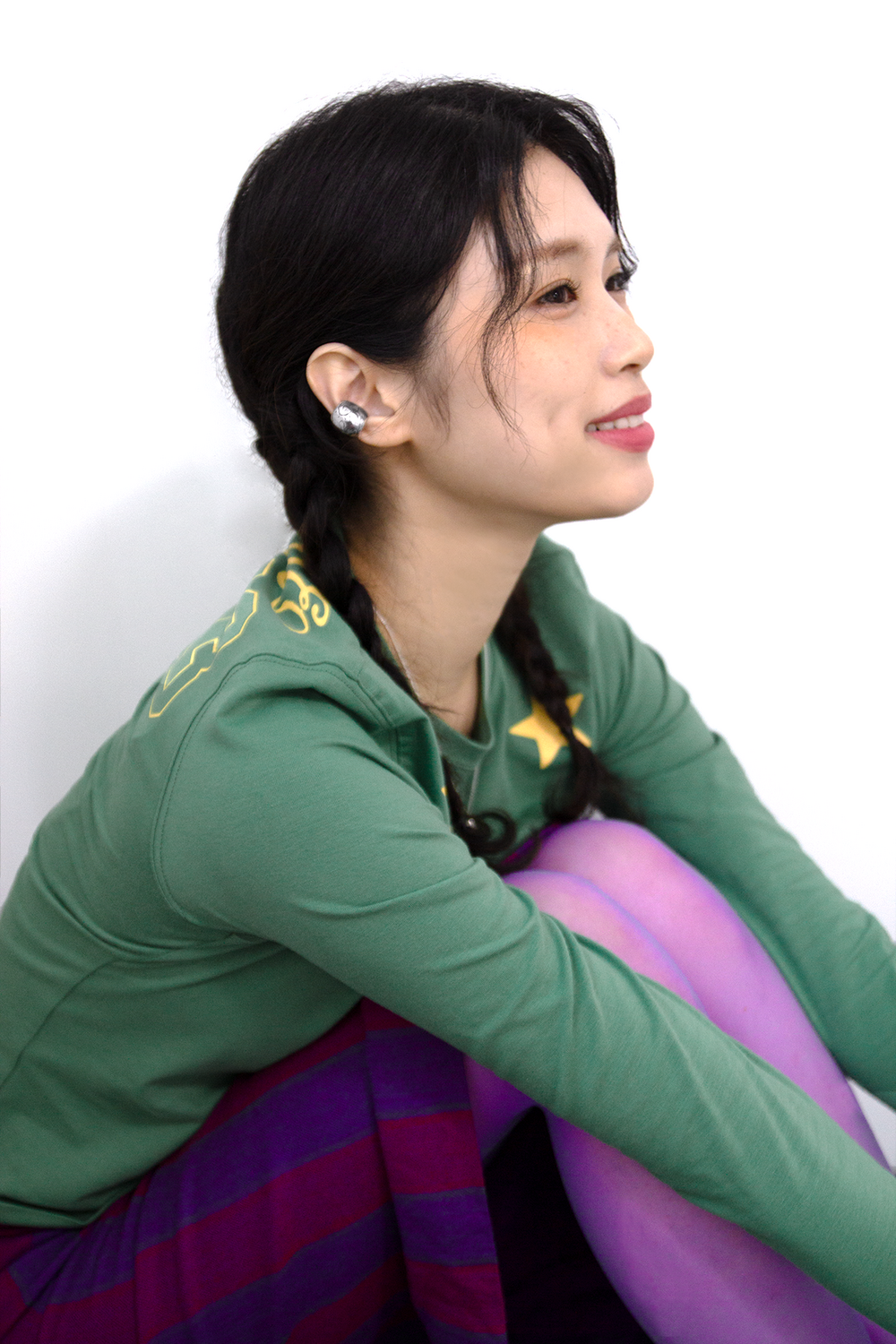 요이지레코드를 걸어다니며 춤추는 고양이의 모습이 귀여운 드로잉으로 담긴 이어커프 입니다.