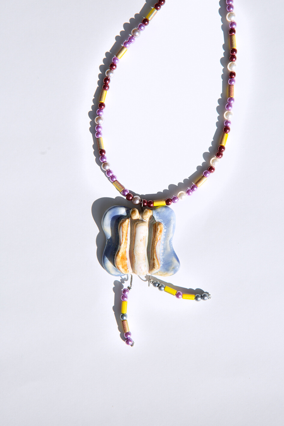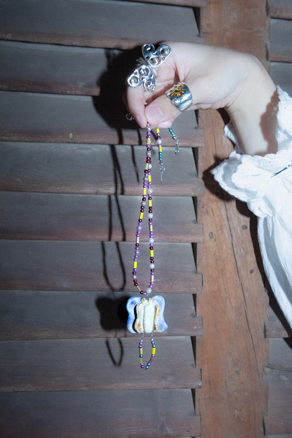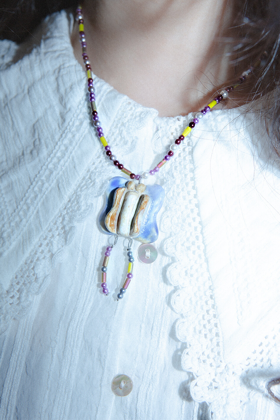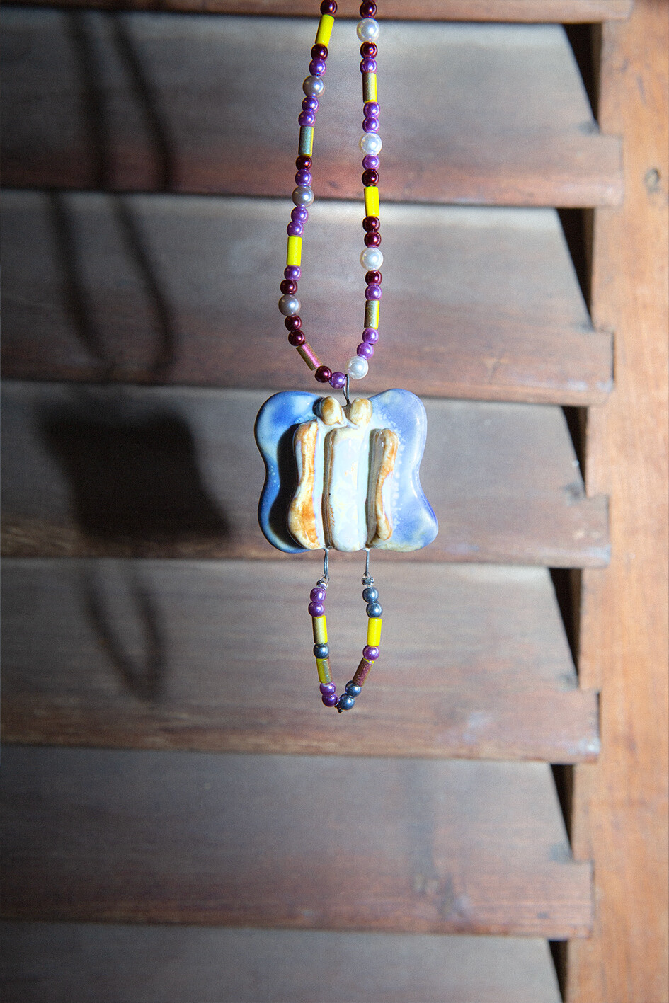 자유롭게 날아다니는 빈티지한 컬러의 알록달록한 날개를 가진 세라믹 목걸이 입니다.